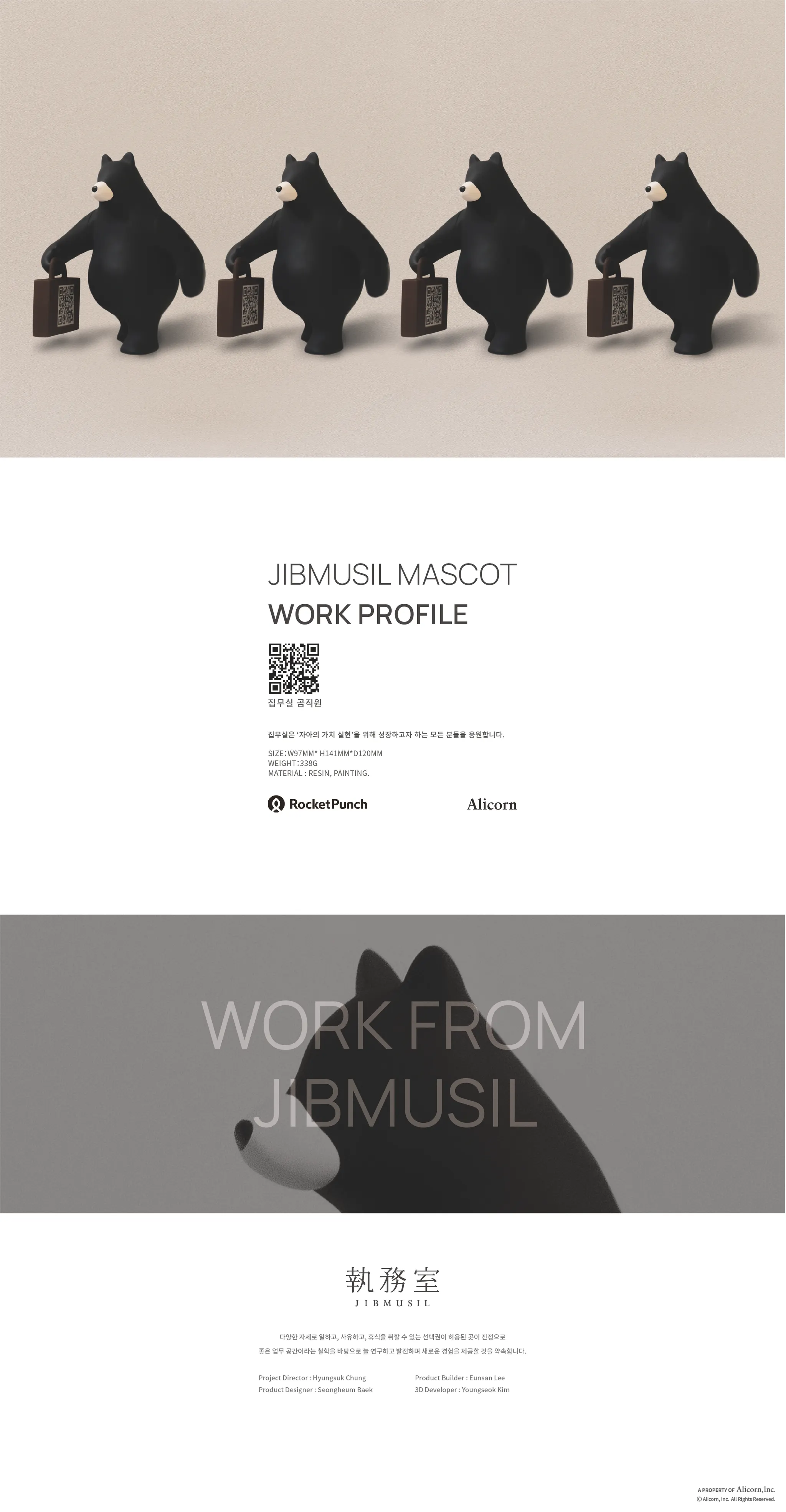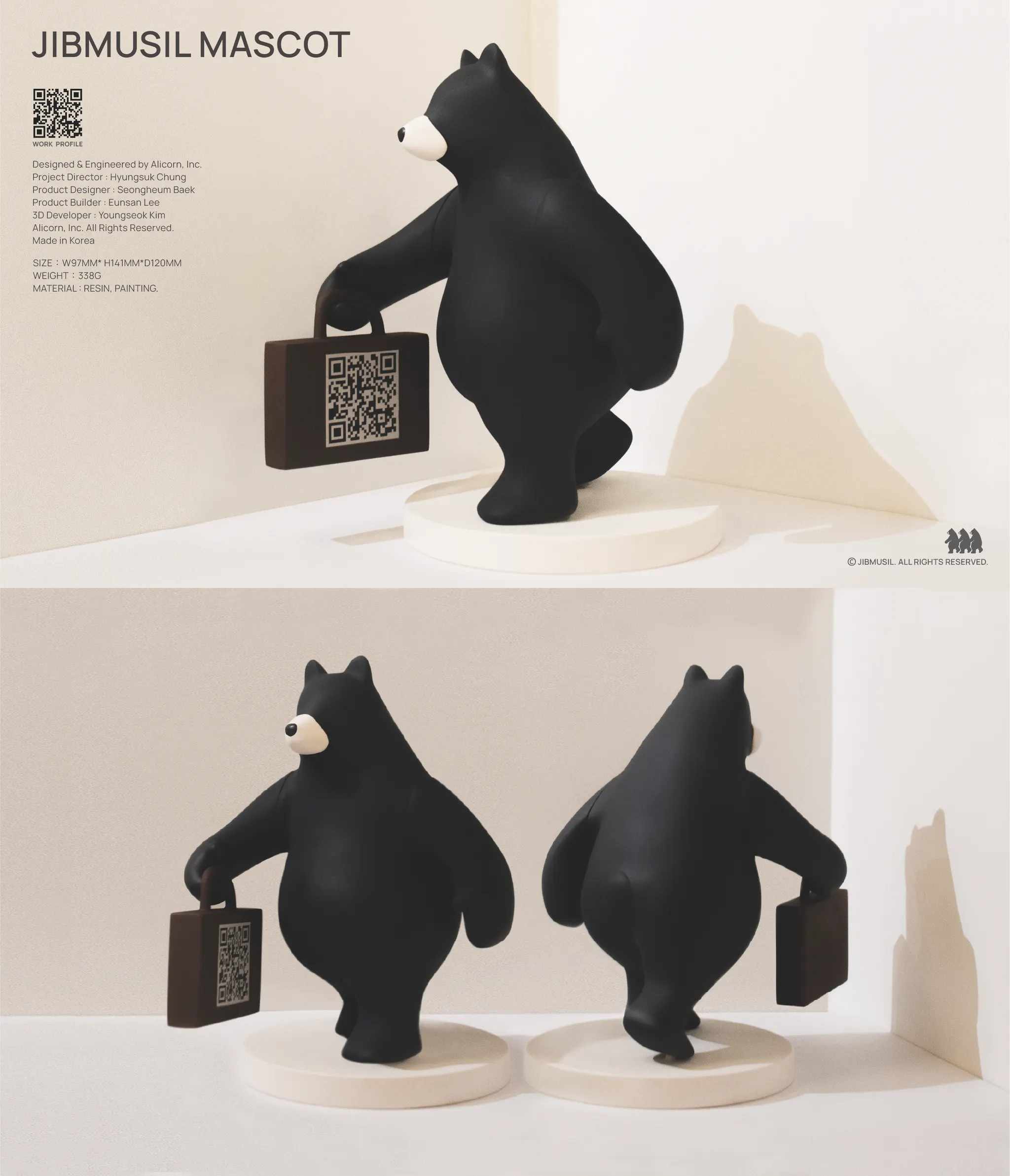 집무실의 마스코트인 '곰직원'은 고객들에게 친숙하고 따뜻한 이미지를 전달하기 위해 개발된 캐릭터입니다. 이 프로젝트는 '곰직원'을 피규어로 제작하여 브랜드 경험을 확장하고, 고객들에게 더욱 가까이 다가가고자 하는 목표로 시작되었습니다.