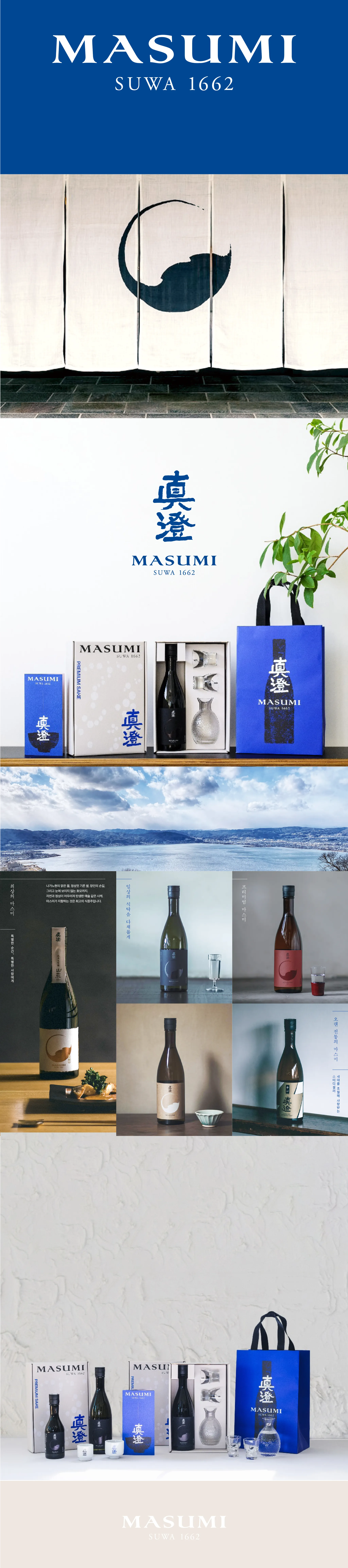 이번 프로젝트는 엠즈베버리지가 독점 유통하는 일본 프리미엄 사케 브랜드, 마스미(Masumi)의 비주얼 아이덴티티 리뉴얼 작업입니다. 소비자가 가장 먼저 접하는 패키지, 브로셔, 쇼핑백을 새롭게 개발하여 브랜드의 첫 경험을 현대적이고 세련된 방향으로 재정립했습니다.