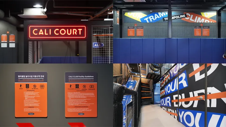 캘리포니아 키즈 클럽의 비주얼 아이덴티티는 브랜드의 핵심 가치를 효과적으로 전달하며, 클럽 공간 내에서 일관된 브랜드 경험을 제공합니다. 사이니지는 클럽의 기술적 우수성과 독창성을 강조하며, 방문자들에게 강렬한 인상을 남겼습니다.