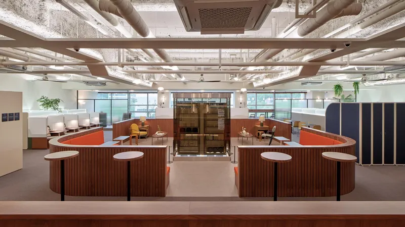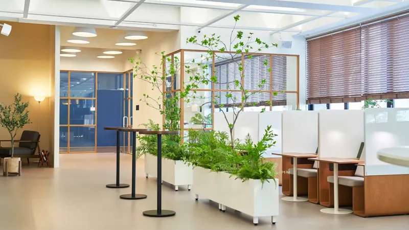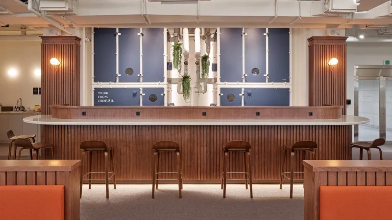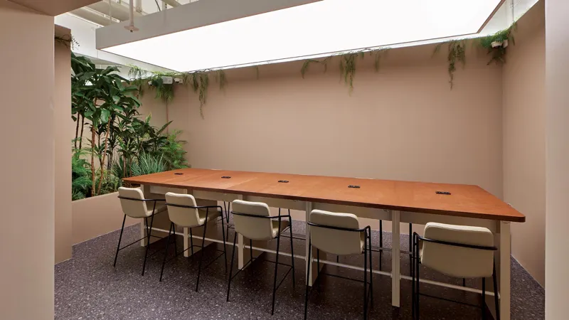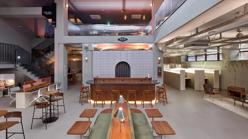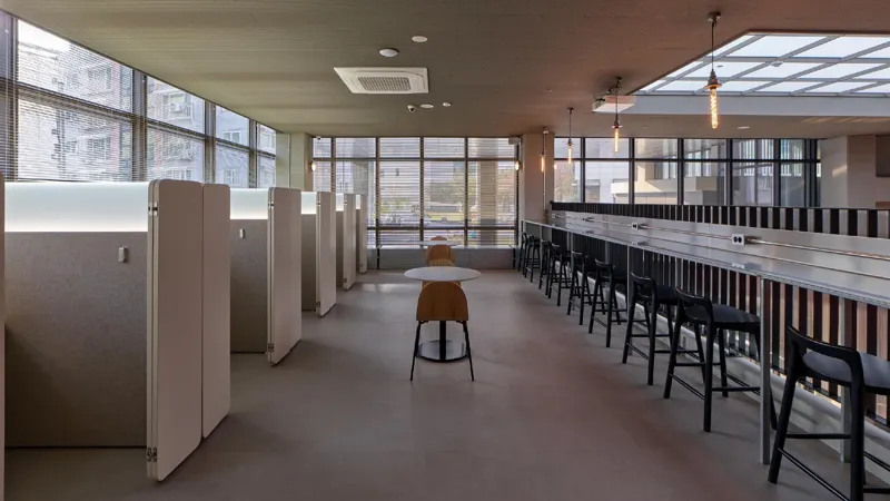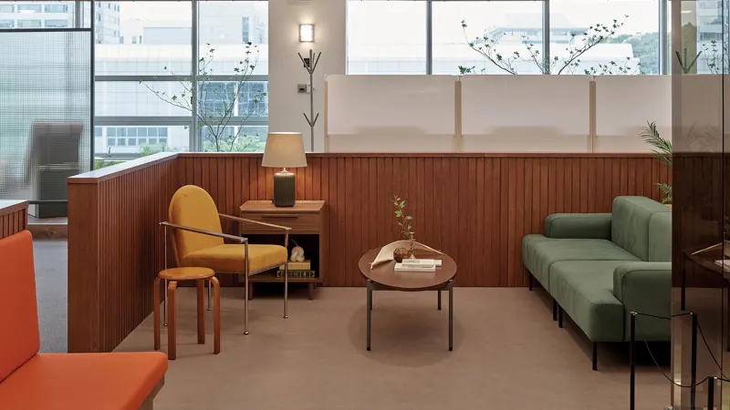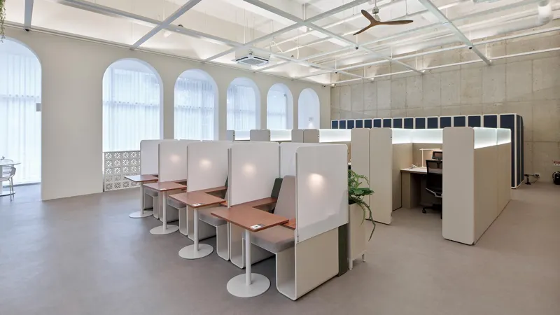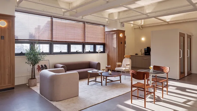 공간 디자인에서도 불필요한 요소를 과감히 줄이고 쾌적한 업무 환경을 조성하는 데 집중했습니다. 대표적인 예로 자체 제작한 세 종류의 '워크 모듈'이 있습니다. 이 워크 모듈들은 원격 근무자의 성향을 타입화하여 제작되었습니다. 또한, 기존의 코워킹 스페이스보다 차분하고 아늑한 분위기를 조성하여, 집무실의 장점을 극대화했습니다.